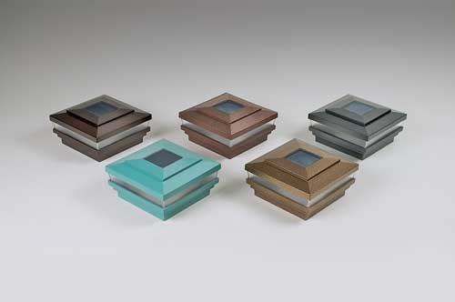 The new metallic finishes include antique brown, antique copper, antique gray, antique gold and patina. The post caps install to fence and railing posts and coordinate with 4-inch by 4-inch and 5-inch by 5-inch posts. Backed by a two-year warranty, the solar post caps include eco-friendly LED lights for the ultimate in solar-powered accent lighting.