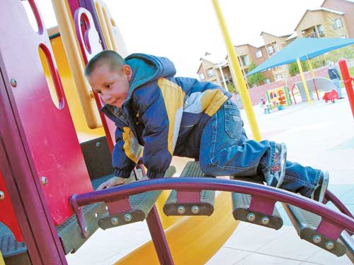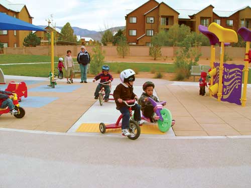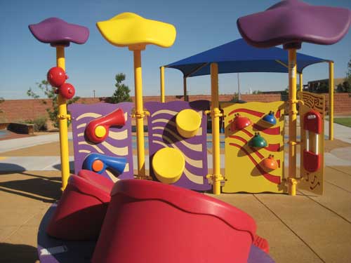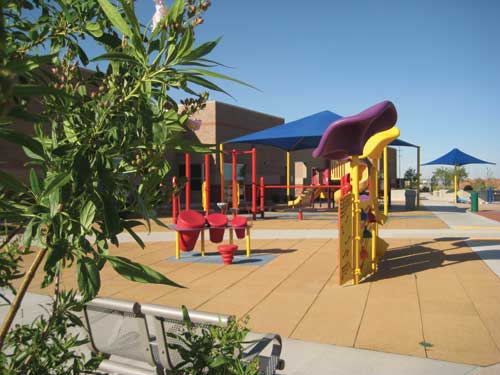 Playground equipment from Landscape Structures and Playworld provides a variety of fun and educational experiences for the children at the New Mexico School for the Blind and the Visually Impaired in Albuquerque.