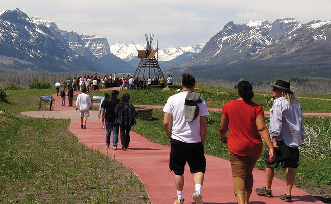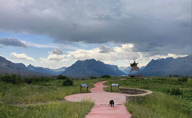 The St. Mary Scenic Overlook provides a panoramic view of St. Mary Lake and the Rocky Mountains - the Crown of the Continent - within Glacier National Park. At 5050' elevation, the area lies within a small slice of Montana that is within the Hudson Bay drainage area. Occupying approximately 1.8 acres, owned in trust by the USA for the Blackfeet Nation, the site lies along a major north-south highway connecting Canada and Mexico. It is located on the auto "loop" that traverses Glacier National Park via the famous Going-to-the-Sun Road, which sees approximately 2.2 million visitors every year. The land is part of the legendary home of the 'Trickster', or 'Napi' as he is called in the native Blackfeet language. The tribe has been in these lands, that once extended from central Canada south to the Yellowstone River, for millennia. Currently, the 17,000 enrolled members of the Blackfeet Nation now occupy the 1.5-million-acre territory in northwestern Montana that borders Canada to the north and Glacier National Park to the west.