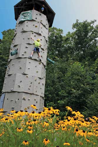 Discovery Den Of course, just because the trail adventure is over doesn't mean the fun ends. Don't miss Grady's Animal Discovery Den located just outside the trail's end, where there are always live snakes, turtles, frogs, groundhogs and opossums to see. Most of the year (check your calendars!) naturalist Emily Walker is on hand to bring out the resident great horned owl and hawk for the kids to enjoy. And of course, Grady the Groundhog makes his grand entrance, live and in person. The rock-climbing tower is also located here and reaches a height of 40 feet, a challenge for kids and adults alike.