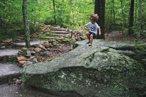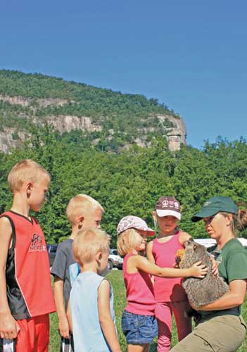 More families, however, are coming to discover a magical interpretive children's trail, where kids of all ages can ride on the backs of bears, climb into a turtle shell, sit in a tree house with a great horned owl and control the flight of birds. It's called the Great Woodland Adventure, located in Chimney Rock at Chimney Rock State Park.