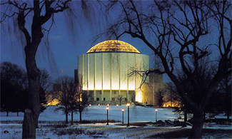 The final aspect of the overall campus design included lighting the buildings. Focal points were created around campus by illuminating specific building facades. These structures act as points of reference at night. New students often refer to major buildings during the day to find their way around campus. If these structures are not illuminated at night, the students lose their point of reference and may consequently lose their orientation.