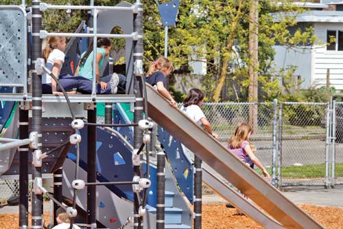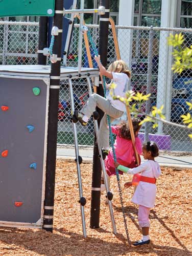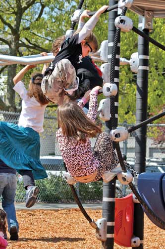 Until now, the federal No Child Left Behind law has stimulated most schools to increase time spent on reading and math, and 44 percent of school districts have achieved this by cutting time spent on “noncore” subjects, such as the arts, PE, and recess.1 However this approach does not seem to hold the solution for engaging kids with school and is likely a contributing factor to health problems, such as childhood obesity.2 The Let’s Move Campaign, as well as the recent White House Task Force report, “Solving the Problem of Childhood Obesity within a Generation,” point to the vital role of schools as settings to influence healthy behavior.3,4 More and more evidence is accumulating that demonstrates the link between student physical activity breaks and academic performance. Increasing the number of safe, quality playgrounds in schools is an engaging way of increasing children’s physical activity.5 Youngsters from all species including humans have a biological drive to be active. After some time in class kids get restless, they cannot sit still and start to squirm, tilt their chairs and their attention wanders. They use their imagination to figure out ways to get out of the chair or talk to their friends, all activities resulting in not paying attention to the topic being addressed in class.