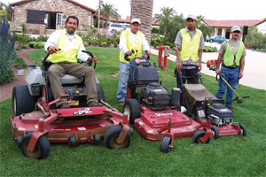 “We’ve have many succulents,” Ric explains. “The plants have to contend with the coastal wind and salt. Some plants can’t tolerate one or either of those conditions, so that’s why Miguel is paying such close attention.” But the most crucial issue to Ric is monitoring the irrigation. “What’s nice is the irrigation system is new, state-of-the-art. We don’t have conditions like some of the old properties in San Diego–shurb beds mixed with turf, turf mixed with succulents. We can multi-program the controllers.” There is one drawback to the drip system, Ric specifies. “There is no injector system, so fertilization is a difficult thing to deal with. The crew has to put down granules, which is a lot more labor intensive.”