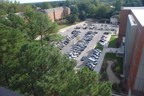 Site Challenges As referenced earlier, one of the challenges for the designers was to provide a plaza that would serve SAS Hall, the existing and renovated Park Shops and keep Stinson Drive a visible, functional, safe street. While HadenStanziale?EUR??,,????'???s original concept was for Stinson Drive to be paved in the same material as the plaza, but graded slightly lower with a visual edge and stainless steel bollards. The university felt strongly the street needed to remain asphalt and ?EUR??,,????'??read?EUR??,,????'?? as a road through flanking plazas.