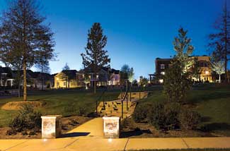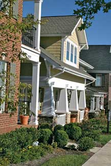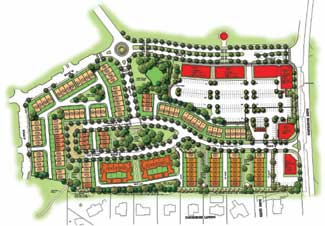 Northshore Town Center home features include tall doors, columns, dormers, covered front porches and brick or stone chimneys. Rear-entry garages will be accessible by alleyways running behind the homes. The idea is to build a community spirit by maximizing neighborly interaction?EUR??,,????'?????<????????????????????front porches, parks and interactive nature trails are the incentives. Swimming holes (just kidding, pools) and walking trails will be on the perimeter of the residential area.