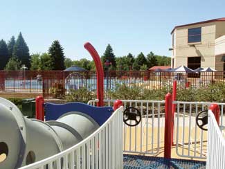 The Oak Brook Park District, serving the thriving community of Oak Brook west of Chicago in Illinois, wanted to create a world-class play environment that included play equipment and a splash pad as an extension of its indoor pool facility. It was to be exciting for children and comfortable for adults, while incorporating a nautical or nature-related theme and enhancing accessibility. At this stage, the part district was open to design ideas and had the resources to execute a large-scale project as part of the overall expansion and enhancement of the community center facility.