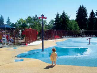 The surfacing for the playground areas and the splash pad was still to be determined at this stage. I looked at poured-in-place rubber and engineered wood fiber by GTImpax for the playground areas. The splash pad could be brushed concrete, or a 1/2 inch poured-in-place rubber cap to soften the deck and add color.