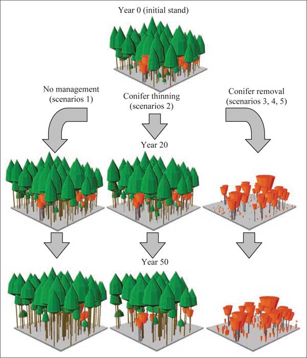“Oaks were predicted to benefit most under the scenarios that included widespread conifer removal in stands where oak was already present,” Gould said.