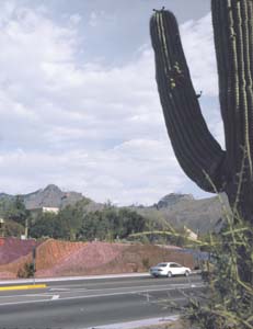 The design features a desert approach using native and non-native arid lenad plants. Desert trees and larger shrubs are used to soften and buffer the screen walls and retaining walls. With the use of desert-adapted plant materials, the intent was to provide visual interest for motorists and pedestrians with a variety of foliage textures, colors and branch structures.