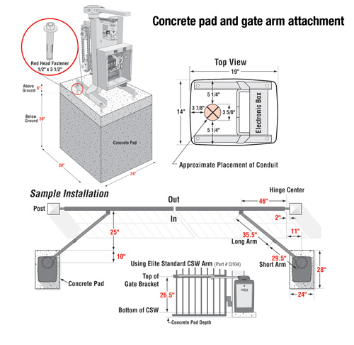 Concealed swing gate operators are generally buried side-arm operators with the tops exposed. Some operators have three-inch arms that open the gates. According to Sullivan, these gate are not as efficient as the other gates, wasting power and wearing out the bearings (not to mention getting worn down in snow). But the systems could be more efficient.