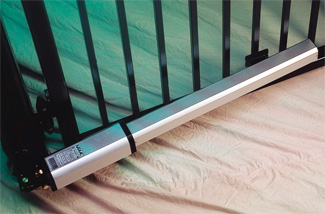 The drive-rail slide-gate operator uses a slightly similar method. A rail is attached to the side of the gate between three spring-loaded wheels (two on top of the rail, and one on the bottom). As the operator turns these wheels concentrically, it pulls the rail through in a manner similar to getting one’s tie caught in the paper shredder. Only this time a gate opens instead of a tie becoming irreversibly unrecognizable.