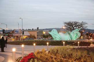This stunning new welcoming point into the city is part of the undertaking to revitalize the pier and harbor area. From the opening day of the project in Dec. 2008, traffic could be seen slowing to take in the surprising new sight at a familiar intersection. The new plaza and fountain have already become an iconic image for the city here on Pacific Coast Highway.