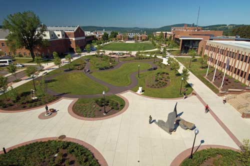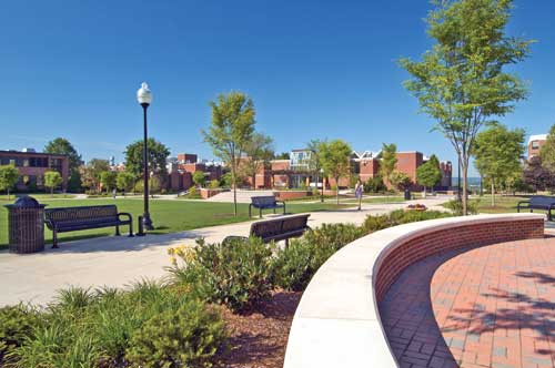You know the Joni Mitchell song about paving paradise and the parking lot? Well, at Bloomsburg University of Pennsylvania, that tune has been rewritten and what was once a parking lot is now a multi-faceted green space in the center of campus, a veritable paradise of gathering spaces for the students, faculty, visitors, and administration.