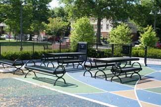 Although eyes usually first spot the screaming, jumping kids that use the brightly colored toys and contraptions in a playground, they then wander to the parents and people relaxing on the sidelines. DuMor, Inc., Diamond Teak, Bedford Technology, LLC, Forms+Surfaces, and Eagle One all provide an array of pleasing and eco-friendly park benches for people to sit and watch the playground chaos.