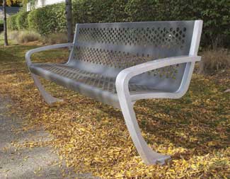 Another material that is both environmentally friendly and resilient for outdoor use is recycled plastic, a material that Bedford Technology, LLC uses for their park benches. The company says its high-density typopolyethylene plastic lumber does not rot or splinter; a UV protector prevents color fade; the manufacturing from this plastic does not create any toxic by-products; and any waste that?EUR??,,????'?????<???EUR?s generated is recycled through the company?EUR??,,????'?????<???EUR?s own process. The benches come in a variety of colors, with the plastic lumber slats available in 15 different colors and the aluminum or steel powdercoated frames available in six.