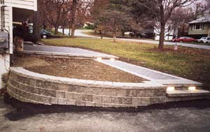 From the start we knew we needed 4 steps from the driveway to the front door. The homeowners also requested an area for a bench or two to be added to the design. After a few different ideas were kicked around a design was chosen.