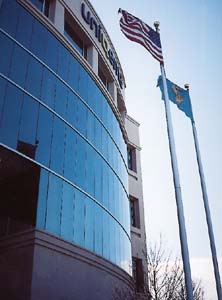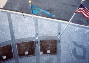 The project was completed in July 2001 and had it's Grand Opening in September, 2001. After completion, the owners made the decision that the project should have signature engraved paving stones (to celebrate specific individuals) installed within the plaza area. After samples produced by other companies proved to be unacceptable, Unilock took the project to task and produced engraved Slate colored (black granite aggregate and green matrix/color) Unigranite 6x6 saw cut paving stones which were engraved and filled with a pewter gray epoxy to match the pewter gray on the building.