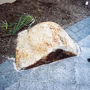 The Entrance Plaza paver design was developed using radial accents bands of 6x6 pavers and the paver "field" was filled with the 12x12 pavers. Paver layout options were developed to minimize cutting while still achieving the "architectural" plan. Eight tree planters were "cut out" of the plaza to provide a "skirt" of green and vertical components to put the entrance plaza in scale with the building. The final detail that really "sold" the owner on the design was the integration of the corporate logo into the Main Entrance Plaza at the front entrance.