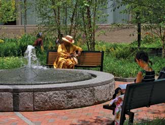 The Center for Interfaith Relations?EUR??,,????'?????<????????????EUR??,,?? mission is ?EUR??,,????'?????<????????to develop spiritual, educational and cultural experiences that inspire and foster individual growth while increasing understanding and harmony among diverse cultures.?EUR??,,????'?????<???????? As landscape architects for the Louisville, Ky. project, we drew inspiration from that statement in designing a lushly-planted urban garden which features brick, water and stone and uses nature and symbolism to foster reflection on universal human values.