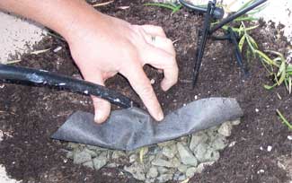 For the job, the crew started the afternoon putting in shrubs and other final plantings. Low voltage lines were run from a source near the home?EUR??,,????'???s spa system controller to several points around the yard where they could be attached to individual fixtures. The electrical conduit is buried 12 to 18 inches below the surface. For the demo, connections to individual fixtures were made above ground. After final placement they were buried, or in the case of several lights on the roof, lines were secured out-of-sight in rain gutters.