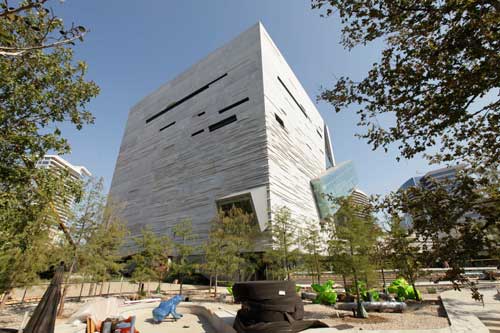 The $185-million Perot Museum of Nature and Science designed by Thom Mayne and Morphosis Architects will open Saturday, December 1, 2012, one month ahead of schedule. The Dallas museum is named in honor of Margot and Ross Perot for their $50-million gift.