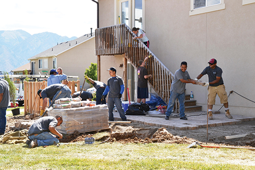 Part of Tuck Landscape's business philosophy is giving back to the community. As a company, we have a continued focus on providing work at no cost to others in need, whether locally in Salt Lake City or in locations across the world. One of our pro bono projects this past year was for the Maryon family in Draper, Utah. This deserving family was going through a difficult life struggle as the father (Dan) of the household was terminally ill. One of Dan's last wishes was to leave his wife and children with a nice yard to enjoy before he was to pass away, yet he didn't have the means to provide this for his family. Maryon's yard had minimal landscaping and Dan hadn't been able to maintain it under his current condition. This is when Tuck Landscape stepped in and provided the family with a fully landscaped yard. Our company employees volunteered their own time without pay to provide the service. They had already worked a full week of over 60 hours each and then were willing to donate another 12-hour day over the weekend. Everyone from company owners to new laborers worked hand in hand to make this a special gift. In addition, we asked several vendors to pitch in by donating material for the project, and many of them did! One of the project's challenges was the location; a mountainside that presented steep grades, rocky soil and a unique climate for plant life. This required us to make sure that we installed plants that could survive in in these conditions. Also, due to the poor soil quality we made sure to mix top grade compost, amendments and top soil with the indigenous soil to aid in plant survival. The front yard had a steep grade, so we built a large rock retaining wall, landscaped with trees and plants. Not only did this rock wall make the curb appeal of this house more impressive, but also, it was a measure taken to prevent erosion and a way for the landscape design to better match the landscape of the surrounding natural mountainside. Our employees installed a Belgard paver patio with a privacy fence. With the design and final touches of plant material, this area off the back of the house provided a private, relaxing area for the family to enjoy.