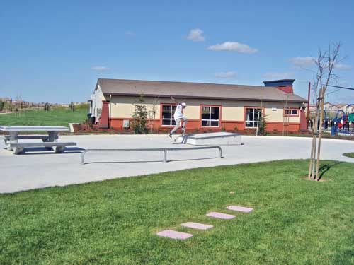 For the Teenagers Skate elements designed for the skate plaza had teens in mind, providing an age-appropriate recreational outlet, while diverting skating activity from other areas of the park, often a source for surface wear and damage. Catering to teens and various age groups, the designers also included a Cal Ripken regulation-size baseball field, centered by a concrete plaza and two sets of dugouts and bleachers.