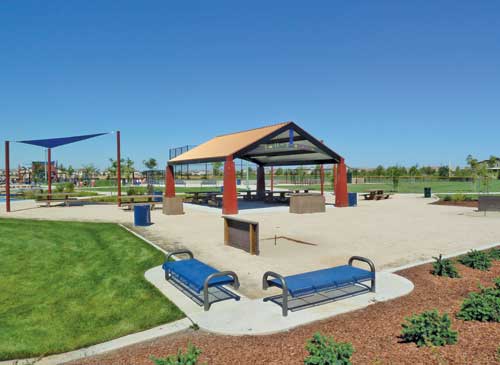 A Family Destination Several shade shelters with adjacent barbecue pits and horseshoe sand pits were positioned adjacent to play areas to provide space for family gatherings. Open spaces accented by seasonal color, grasses, and evergreen and deciduous trees provide pleasant settings for families to gather for less formal events.