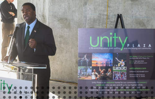On March 30, 2014, Jacksonville Mayor Alvin Brown spoke of Unity Plaza as a catalyst for change and innovation for the city.