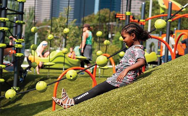 Playground Grass™ by ForeverLawn® is a deluxe, beautiful synthetic grass that is safe to play on, soft to fall on, and cost effective. Available in multiple fun colors, Playground Grass is ideal for parks, school playgrounds, residential yards, and anywhere that safe, inclusive play is desired.
