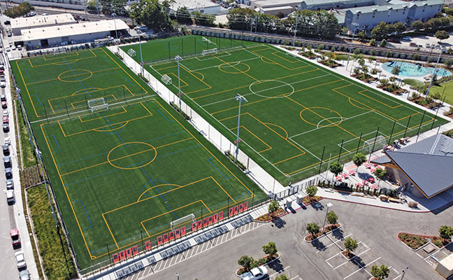 Reed and Grant Sports Park turned a 9.75-acre brownfield site in an industrial zone into a new sports and community facility for an under-served community. LPA's, a landscape architecture firm based in Sacramento, California, design fits five sports fields and an all-purpose recreation building on to the site, utilizing every inch of available land. From the outset, the community was involved in the design process, helping to create an environmentally and fiscally sustainable facility that reflects the city's needs and creates a new icon and gathering point for the community. A study by the City of Santa Clara found the City needed 30 acres of additional active recreation space and sports fields to meet the community's needs, especially for youth soccer. But there was little land available in the built-out City, which is part of Silicon Valley. The City hired the design firm early in the process to engage the community and explore potential sites.