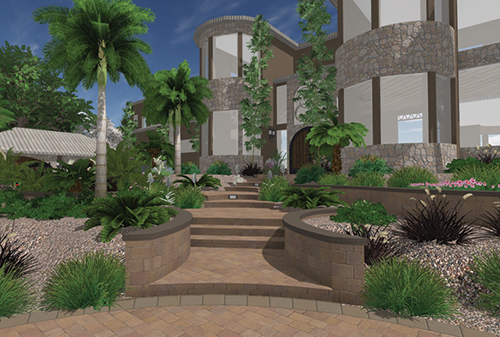 Selling an extensive custom outdoor living project to a homeowner who doesn't understand the full value of design can be time-consuming and frustrating. Question: How can a landscape designer quickly and reliably engage a homeowner's interest in a professional design? Answer: Present the project in vivid, interactive 3D, with design software built for landscape designers. The benefits of a custom project can be lost if the homeowner doesn't fully understand the design. Concerns over the selected materials or project costs can overwhelm a skeptical homeowner, creating doubts that may linger during the installation. Presenting a custom-designed project with an interactive 3D program is a perfect opportunity to build a great relationship with the homeowner, and offer proof that the expertise of a designer is critical. The homeowner can walk through his own backyard and establish a connection with the project, and with the designer. By previewing designs in photorealistic 3D, the homeowner can test-drive an outdoor living space and explore the special features and materials they have chosen. When homeowners can examine every feature in detail, they'll see how the design suits their needs and their aesthetic desires. The homeowner will feel more comfortable spending money on an extensive custom project that will add value to their home. Personalize Projects in Real Time Using 3D programs like those from Structure Studios, VizTerra, Nemetschek, Vectorworks Designer or Land F/X, allow designers the freedom to quickly adapt a design to response to a homeowner's questions or concerns, even in the midst of a presentation. Landscape designers can enlarge a patio or add a water feature, reveal details highlighted by a nighttime view or take a look at the complete design from the homeowner's kitchen window. The ease of editing 3D designs makes explaining the advantages of selected materials simple and tangible. Because homeowners are usually unfamiliar with the extensive options available, the ability to immediately demonstrate how a space will look with upgraded decorative pavers instead of concrete, or stone instead of brick, streamlines the decision-making process and helps the homeowner select the right materials for their project with confidence. Most 3D design programs include an extensive library of fully realized 3D plants and trees, in addition to products from leading manufacturers. Providing options for an outdoor living project reveals the value of different landscaping and hardscaping possibilities, and clarifies the advantages of the design.
