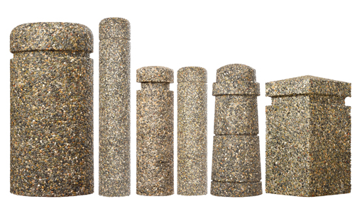 Bollards are also manufactured with an exposed aggregate finish suitable for withstanding wear and pollutants of high-traffic urban environments. Aggregates are collected from British Columbia's Fraser Valley"?uemblematic of the Pacific Northwest and suitable for any landscape or architectural style.