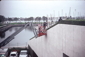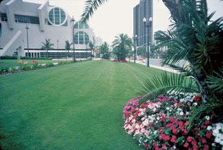Since Donald Bottger started in 1989, the look of the center has completely changed. The initial landscaping plan called for formal shrubbery on the back of the building, Privet and Carissa, which they formally shear. One of the challenges is the whole building and the back terraces have many overhangs and exposed ledges which the grounds crew has to maintain. There is a lot of lift work with boom and scissor lifts to maintain the foliage. Within the grounds care industry there?EUR??,,????'???s a tremendous level of injury. They?EUR??,,????'???ve instituted a fall protection program to make sure the staff is trained and safe when they?EUR??,,????'???re on those ledges.