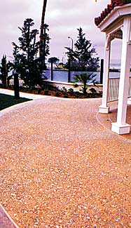 That's when Sully's genius came out. He'd already put in many thousands of square feet of textured concrete when he decided to pay a visit to a friend at the American Institute of Architects who advised him to start calling on Landscape Architects. Sully hooked up with Lifescapes, and Don Brinkerhoff designed the "fish scale" pattern for South Coast Village in California.