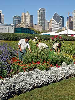 Pearson also noted that even though Moore Landscapes' work is often last-minute and high-pressure, employees go to great lengths to respect their clients' priorities. These demands range from moving planters to accommodate a television shoot for ER in Grant Park to meticulously maintaining the parks where the mayor often gives press conferences. Victor added that the company's client relationships have flourished over the years due in part to employees' extreme attention to detail. Sure, clients recognize our track record, he said. A history of service is important, but answering everyday needs is vital. When our clients call on us, we respond immediately.