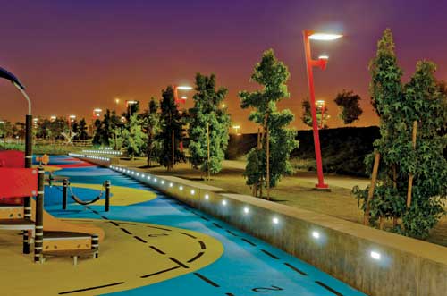 The area?EUR??,,????'???s landscape now consists of a 16-ft.-high graded berm that acts as a sound and visual barrier along the southern edge (port side) of the project, with grass, trees, other landscaping and planted material. Paths, walkways, and pedestrian bridges are throughout the park, as are water features, drinking fountains, mounted binoculars, a playground and restrooms. The park is open to the public, for family gatherings, children?EUR??,,????'???s play, performance arts, walking, bicycling, recreation and for community events.