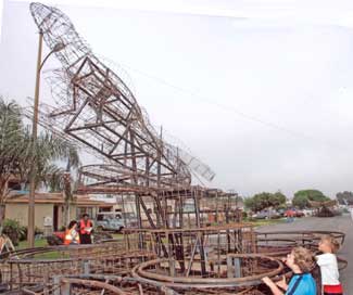 Various lizard species from throughout the world are found basking in the colorful rainforest laden with thousands of aromatic roses. Four waterfalls, consisting of the largest ever showcased in the Rose Parade, gently cascade through mist-draped gardens into a central lagoon filled with floating sculptured water lilies and colorful frogs.