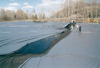 Polyvinyl chloride (PVC) geomembranes, according to Mr. Lange, are nonreinforced materials with a high puncture strength, excellent abrasion resistance and resistant to a large number of industrial chemicals. In buried applications, as in the case of ponds, the material has a life of 20 plus years. With the availability of large factory-fabricated PVC panels and diverse field seaming capabilities, which include chemical, hot wedge, and hot air processes, PVC is easy to install. It can also be custom sized to fit the variety of internal basins within the ponds. In addition to standard grade, PVC geomembranes are available in oil resistant, UV resistant, fishgrade, reinforced, and potable water formulations.