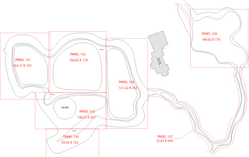 Interviews with the client and visits to the site ensued. Designing a landscape of this size was not a typical undertaking. The scale of the land, Mr. McKee felt, required large water features. The decision was made for three ponds: a main pond of 120,000 square feet, and two smaller ponds, 90,000 square feet and 30,000 square feet.