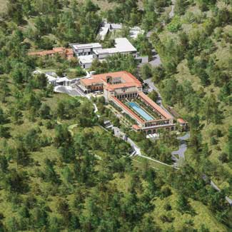 While planning the villa, Kurutz completed rigorous research that included ancient texts and trips to Italy and the Mediterranean. He looked to Roman writers including Pliny the Younger, a witness to the 79 eruption who wrote letters describing configurations and plantings at his own villas. Kurutz also consulted the Greek physician and herbalist Pedanius Dioscorides, who compiled a list of close to 600 plants known and cultivated in the ancient world around the first century.