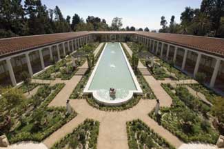 At the Getty Villa this is no small point, because the gardens are no less impressive than the other buildings. The regal main peristyle garden, adjoining herb garden, inner peristyle garden and east garden are world highlights and unique in terms of complete and living restorations of Roman landscape architecture (see sidebar at bottom).