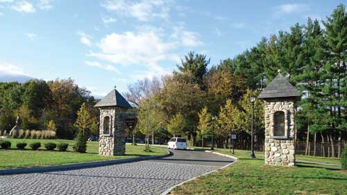 The park's new roundabout at the western entrance is the centerpiece of the improved vehicular circulation. The stone gateway pillars reflect the character of the decorative columns that were part of the original park design.