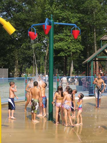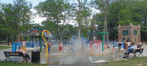 Phase II renovations included the popular spray park and picnic pavilions. Other phase II additions (not pictured) were lighted volleyball courts, Little League field renovations (event lighting and scoreboard), a renovated youth baseball field, plus court games, landscaping, lighting and sidewalk and parking improvements.
