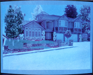 As he moves the pen across the board, a small cursor on the view monitor closely parallels the movements. An unsightly tree in front of the garage is manipulated with a few deft strikes to disappear from the screen. The background is quickly restored, simulating the look of the garage where the tree had been. More information boxes appear. Shrubs are chosen and placed around the foundation, forming informal rows along the side of the property. Trees are selected from a database, manipulated in size and positioned in the foreground. Lawn is pulled from a ‘menu’ of groundcovers to form the ground plans. A stone entry path, steps and pilisters are selected. A picket fence is pulled from the database and placed at the front property line. A few accent plants are added to soften the fence line. As a finishing touch, Garry adds a little more blue to the sky.