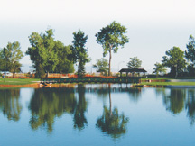 The City of Northglenn, Colorado, incorporated in 1969, is a community of 6.5 square miles, with a population of approximately 31,500 residents located eight miles north of downtown Denver. Surrounded by other established and growing municipalities, Northglenn has become a landlocked city and is rapidly approaching built out status. This situation ill affords the City with the opportunities to benefit from development related improvements created by new businesses and residential housing projects, growth factors that usually give support to the development of new neighborhood parks and the preservation of open spaces. Realizing the importance and value of public parks and open space, the City embarked on an aggressive, publicly supported multi-million dollar renovation of one of its largest and oldest non-athletic parks. E. B. Rains, Jr. Memorial Park, renamed for a fallen police officer in 1985, is an aging 39-acre park that had not undergone any comprehensive or significant improvement in its 34-year history. In addition to high public use, the park is located adjacent to the civic center complex comprised of City Hall and the Northglenn Recreation Center, and is a destination point for many area schools, eldercare facilities and those providing services to the disabled community. The City?EUR??,,????'???s goal in this project was to initiate a significant rehabilitation of this highly impacted and utilized regional park and, upon its completion, assure its citizens one of the finest public parks available in the Denver metropolitan region. The City accomplished this goal with the park?EUR??,,????'???s completion on July 3, 2001. The grand re-opening celebration was held at the beginning of the City?EUR??,,????'???s annual Family Festival celebration on July 4th. The focal feature of the park is Webster Lake, a man-made irrigation reservoir dating back to 1887. Webster Lake had undergone various changes in its long history, but when it was taken over by Northglenn in 1969, it had become a 10 acre pond characterized by a shallow lake bottom, a square shoreline and a fishery sustained by the stocking efforts of the Colorado Division of Wildlife. The main emphasis of the rehabilitation project was to create a lake environment capable of sustaining a self- perpetuating fishery while providing an aesthetic feature and recreational amenity within the park. The lake was drained, deepened and reconstructed to allow for a more ?EUR??,,????'??natural?EUR??,,????'?? lake environment, with water depths increased from 11 feet to 25 feet. A PVC liner was installed to help minimize water losses through the permeable sub-grade of the lake bottom and various shoreline treatments were added to help reduce erosion and to make the lake more accessible for the disabled. Over three hundred linear feet of existing shoreline cattails were removed and stockpiled during construction, and upon replanting they re-established themselves rapidly and vigorously. Numerous aquatic plant species were introduced to provide for an improved aquatic ecosystem, which add to the more ?EUR??,,????'??natural?EUR??,,????'?? lake setting and an improved aesthetic quality. A ?EUR??,,????'??Quiet Cove?EUR??,,????'?? was created to serve as a natural spawning ground in a newly protected section of the lake created by the construction of a peninsula. The quiet cove is posted as no fishing or other disturbances. Soil from the old lake bottom was used to create the peninsula and to extend parkland into the lake, thereby establishing an additional three acres of usable turf area in the park. Through careful balancing of earth cuts and fills, the lake volume remained the same, and little additional soil was required to fulfill the intent of the grading plan. A decorative geyser fountain was added to help aerate the lake and to provide an aesthetic focal point when viewed from any direction. Webster Lake has in the past and continues to this day to be filled by water from the adjacent Farmers?EUR??,,????'??? Highline Canal. A 500-foot portion of the canal was reconstructed and water through this section is now conveyed through an underground box culvert. This action not only took care of a safety issue in a steeply sloped section of the canal, but also added an additional half-acre of parkland and improved access from the recreation center across the street. The existing eight-foot wide asphalt trail around the lake was reconstructed into to a ten-foot wide concrete pathway around the lake, and further widened to sixteen feet through the center of the park, where congestion at times made usage difficult. The new trails also allow for easier service vehicle access. Additional seating benches for lake viewing and relaxation were placed around the lake, as well as new picnic tables throughout the park. Designers of the project also incorporated an 80-foot pedestrian bridge from the new peninsula to the western shoreline. Named the ?EUR??,,????'??New Millennium?EUR??,,????'?? bridge to commemorate the dawn of the new century, the bridge is paved with approximately 2,000 brick pavers, 650 of which were sold to the public, with all proceeds committed to the overall project, and inscribed with personalized commemorative phrases or names. As part of the construction process, those who purchased the brick pavers were invited to place their individual bricks on the bridge. On a Saturday morning, over 400 purchasers showed up to lay their bricks on the bridge. City staff assisted them in their installation and in many instances, loved ones were remembered and amidst tears and memories. A new dock and boathouse were constructed to house the pedal boat and concession operation through the summer months. The boathouse was designed to store boats in the water under the boathouse during the summer use season, providing secure and easy access for staff. During the off-season and through the winter, boats are stored inside the building keeping them out of