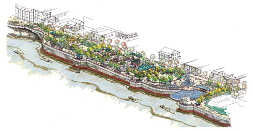 Riverwalk Development The next strategic development was the Mitch McConnell Riverwalk and Plaza. Envisioned as an outdoor, open green space, the plaza provides for intimate settings as well as larger spaces sufficient to host programmed special events such as their famous BBQ Festival. Inclusive of an amphitheater, plaza, and pavilion close attention was paid to every design element. “We know from our experience that it is the details on which people reminisce,” Kissinger said.