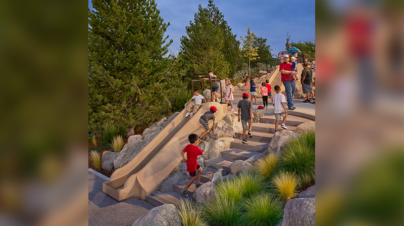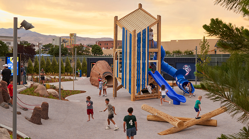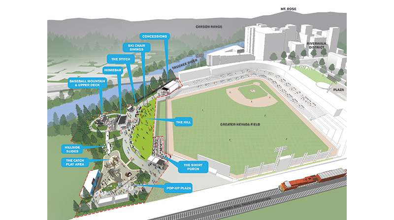 The Parks Issue of Landscape Architect and Specifier News saw many firms submit their projects for feature consideration. Reno Aces Outfield is one of several great projects we are excited to showcase on LandscapeArchitect.com.The Reno Aces Outfield project transformed an underutilized area of Greater Nevada Field into a dynamic, family-friendly, park-like space that celebrates Reno's heritage, the excitement of baseball, and the natural beauty of the region. Rooted in a deep respect for context, the design draws inspiration from the site's urban fabric, regional character, and surrounding landscape to reclaim the outfield as a public realm that feels authentic, welcoming and uniquely connected to place.Key objectives include enhancing connectivity, visibility and flexibility across the site, enabling a seamless flow that supports both daily use and larger events. The design encourages movement, spontaneous interaction, and a sense of discovery, with adaptable zones for gathering, playing, and relaxing.Inclusivity is central to our approach, with spaces designed to engage visitors of all ages and backgrounds. Elements like tiered seating, interactive play features, accessible hillside slides and shaded rest areas create a welcoming environment for families and fans alike.Sustainability is also a guiding principle. The use of native plantings, permeable fall zone surfacing and topographic design strategies reflects the local environment while promoting long-term ecological resilience. Collectively, the project aspires to build community, celebrate local identity, and create a lasting, beloved public realm within the heart of downtown Reno.
