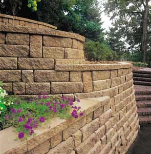 SRWs are typically more visually appealing than other type walls and are much more versatile. SRWs are available in a multitude of colors and a wide variety of sizes, face patterns and textures including sculptured faces, straight split faces, striated faces, tumbled faces, etc. Multi-piece block systems are becoming very popular and add to the visual appeal. The systems can also be designed to incorporate live plantings within the units. SRWs, because of the face patterns, also resist graffiti extremely well, making them ideal in urban environments. Additionally, SRWs offer much more design flexibility and lend themselves to graceful radiuses, 90-degree corners, stairs and columns and satisfy other complex architectural requirements.